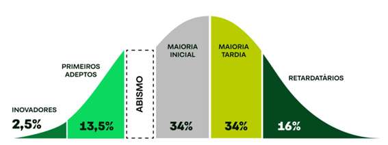 Esse público inicial, mais aberto à experimentação, é fundamental. São eles que validam, utilizam, recomendam e ajudam a dar tração à inovação. Sem essa base, dificilmente uma ideia ganha escala.
